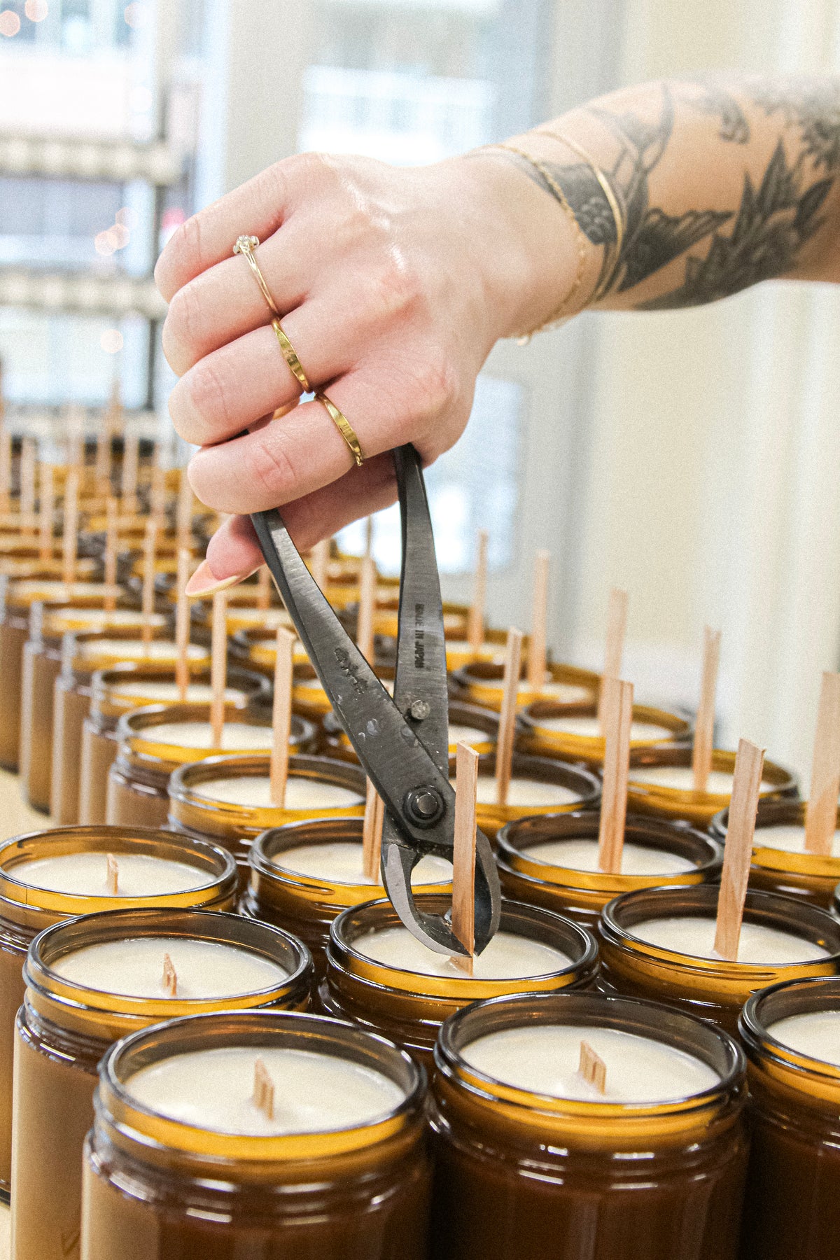 For best burn results, make sure to keep your wick trimmed to 1/8”- 1/16" and always make sure you're burning the candle between 2-4 hours at a time. It is important to trim your wooden wicks before each burn because when there is too much wood material between the flame and the wax, you run the risk of the candle not being able to light itself. If this happens, the candle will extinguish shortly after being lit. You can trim the wick by breaking off the charred part of the wick with Kleenex or paper towel! We also sell wick trimmers if you prefer to use those!