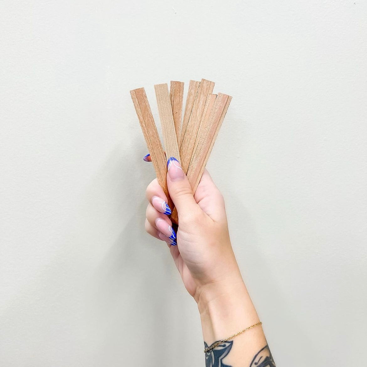 At Coastal Cove Candle Co., we use hand-crafted wooden wicks that are not only eco-friendly and clean-burning, but also made from FSC Certified Wood.